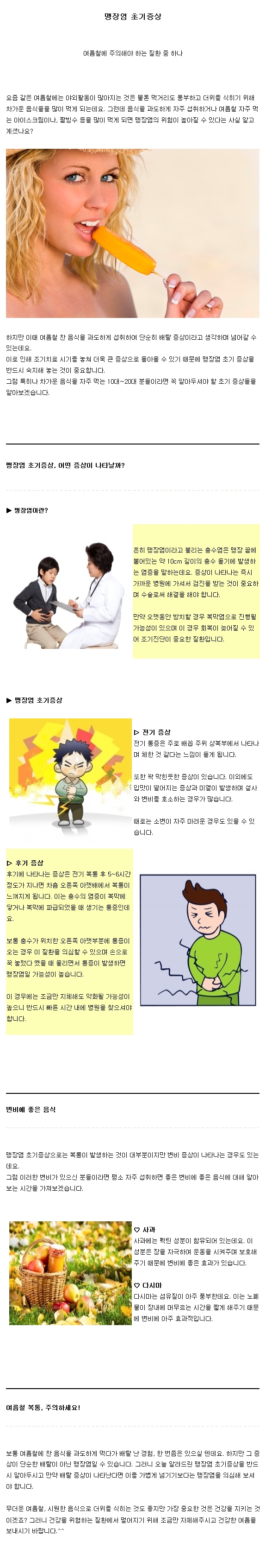 질환정보 | 여름철 차가운 음식이 맹장염 초기증상 유발?