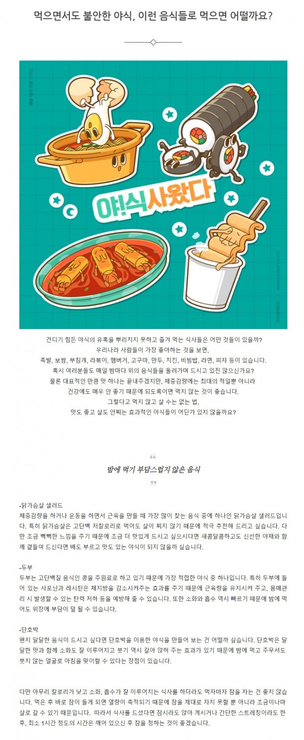 다이어트 | 먹으면서도 불안한 야식, 이런 음식들로 먹으면 어떨까요?