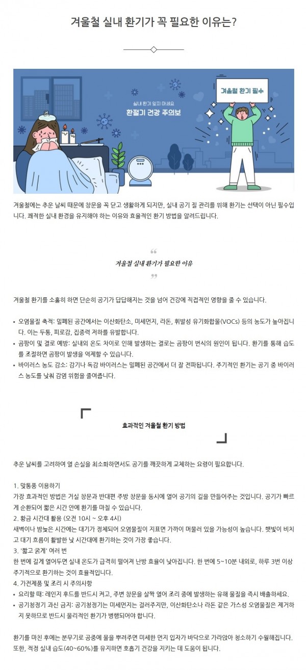 생활정보 | 겨울철 실내 환기가 꼭 필요한 이유는?
