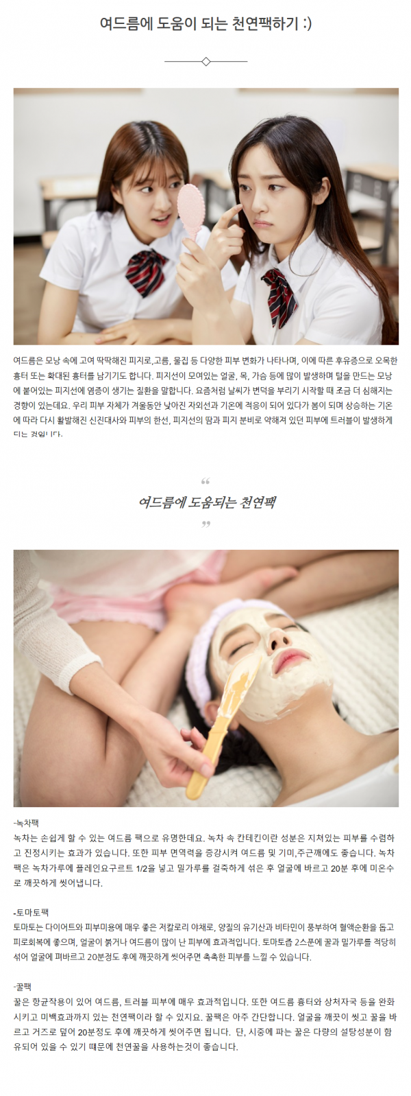 피부미용 | 여드름에 도움이 되는 천연팩하기