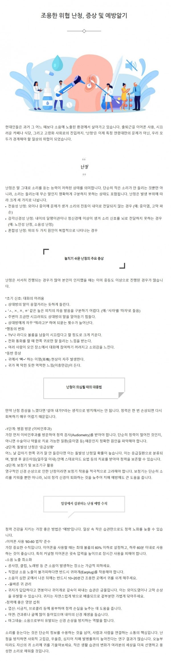 건강상식 | 조용한 위협 난청, 증상 및 예방알기