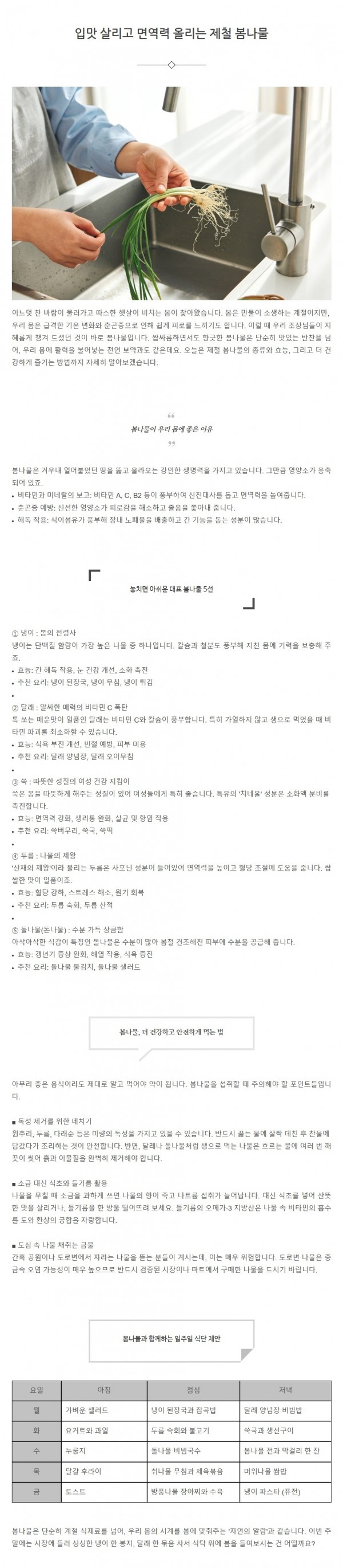 생활정보 | 봄나물과 함께하는 일주일 식단 제안