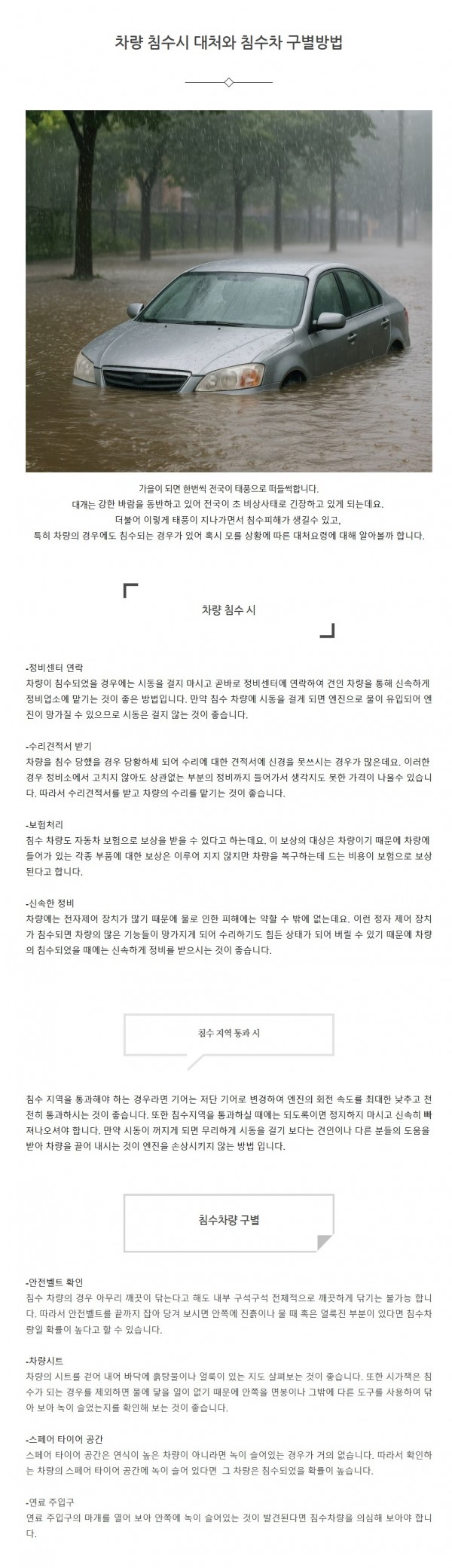 생활정보 | 차량 침수시 대처와 침수차 구별방법