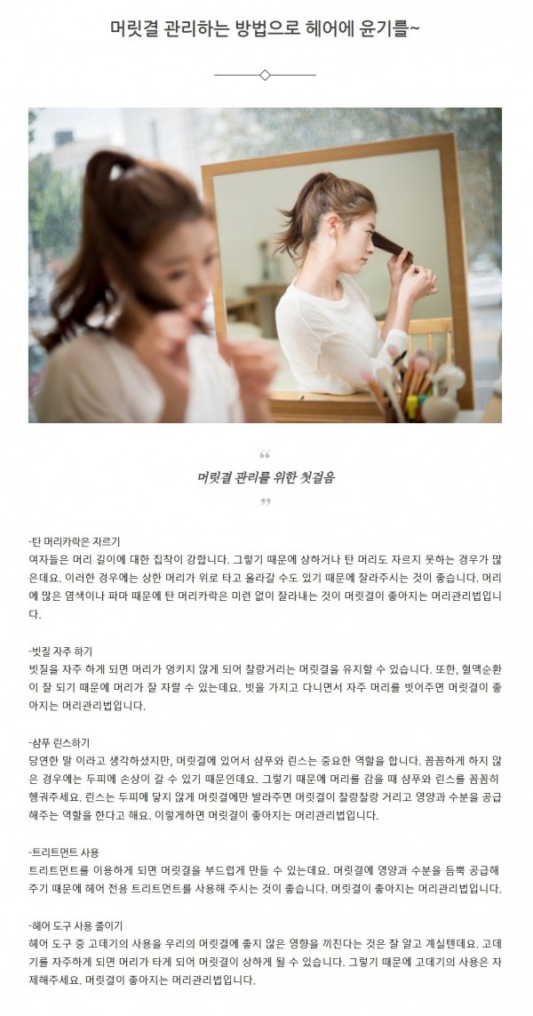 피부미용 | 머릿결 관리하는 방법으로 헤어에 윤기를~