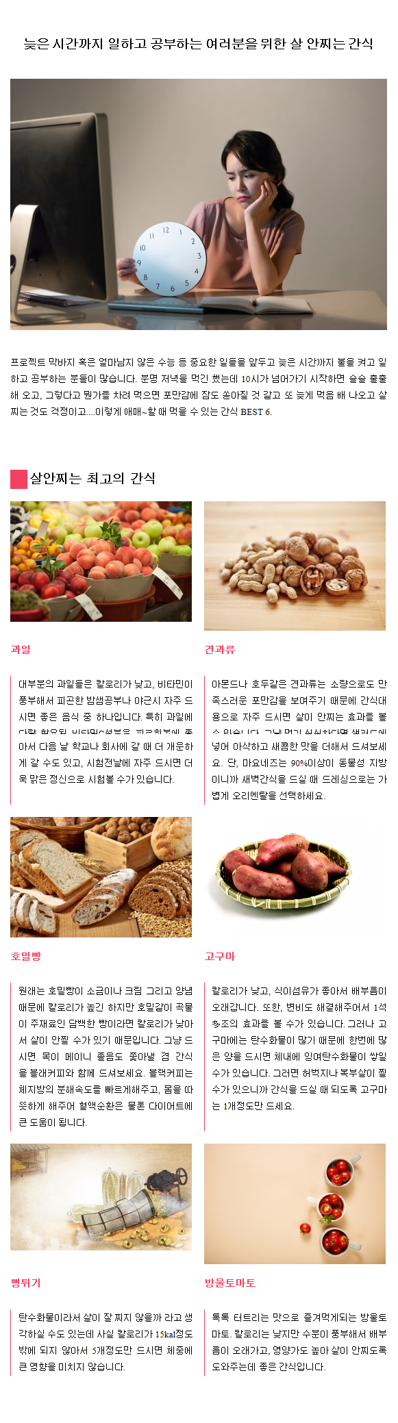 다이어트 | 늦은 시간까지 일하고 공부하는 여러분을 위한 살안찌는 간식
