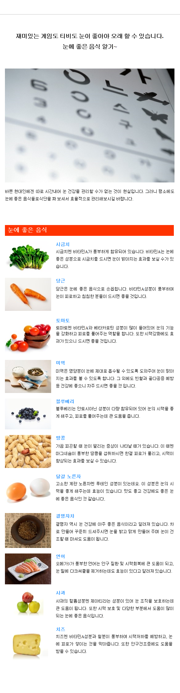 생활정보 | 눈에 좋은 음식 알기