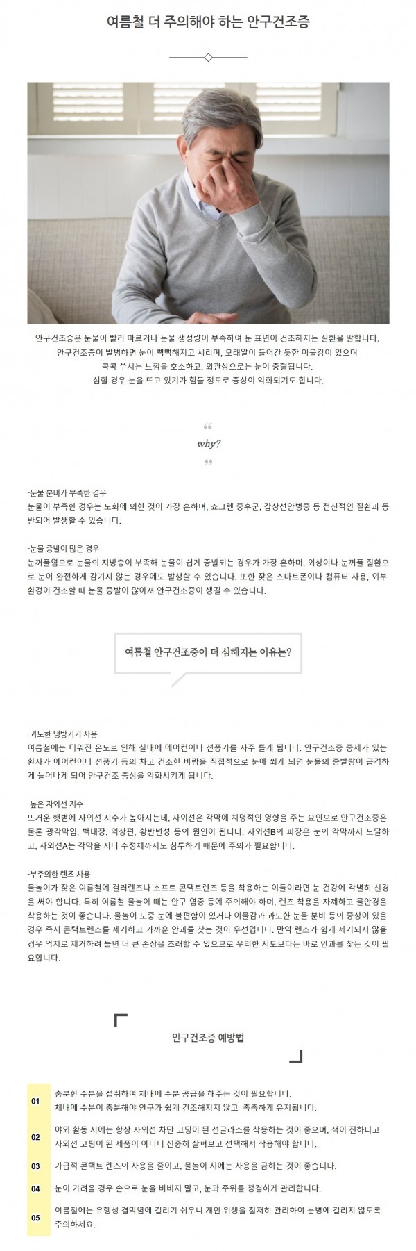 질환정보 | 여름철 더 주의해야 하는 안구건조증