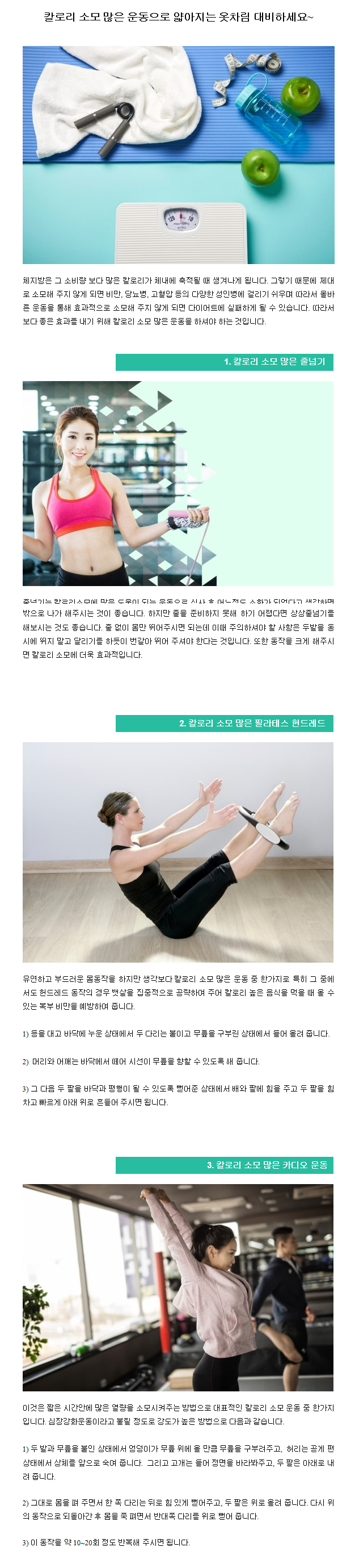 다이어트 | 칼로리 소모 많은 운동으로 얇아지는 옷차림 대비하세요~