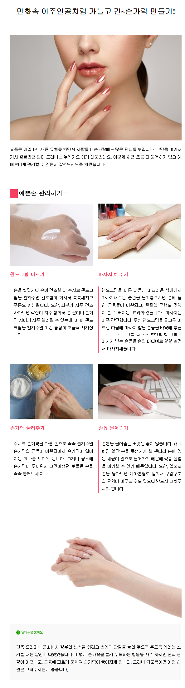 피부미용 | 만화속 여주인공처럼 가늘고 긴~손가락 만들기!