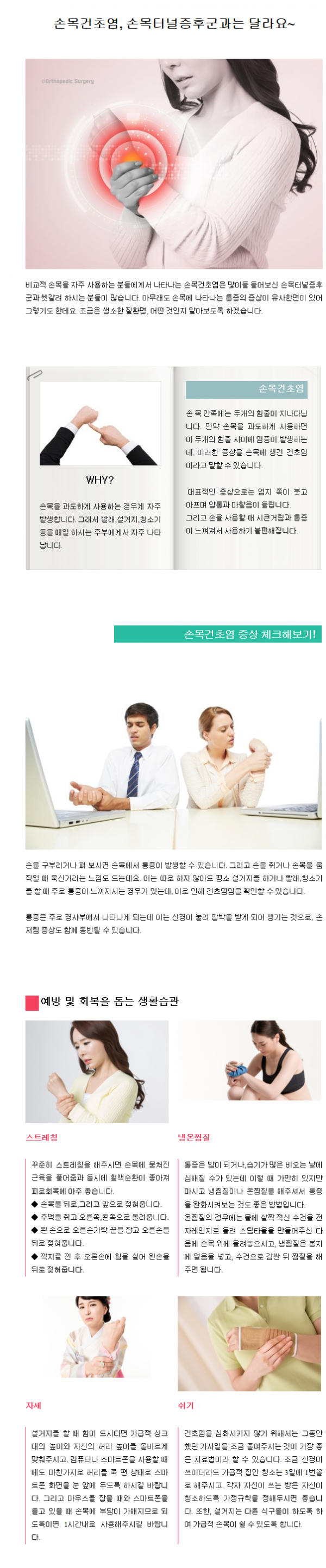 질환정보 | 손목건초염, 손목터널증후군과 달라요~