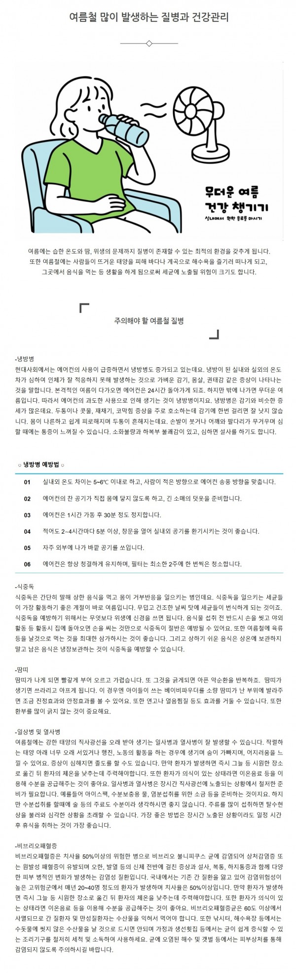건강상식 | 여름철 많이 발생하는 질병과 건강관리