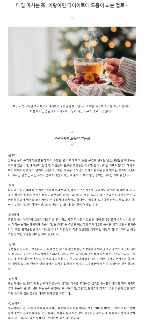 다이어트 | 매일 마시는 茶, 이왕이면 다이어트에 도움이 되는 걸로~