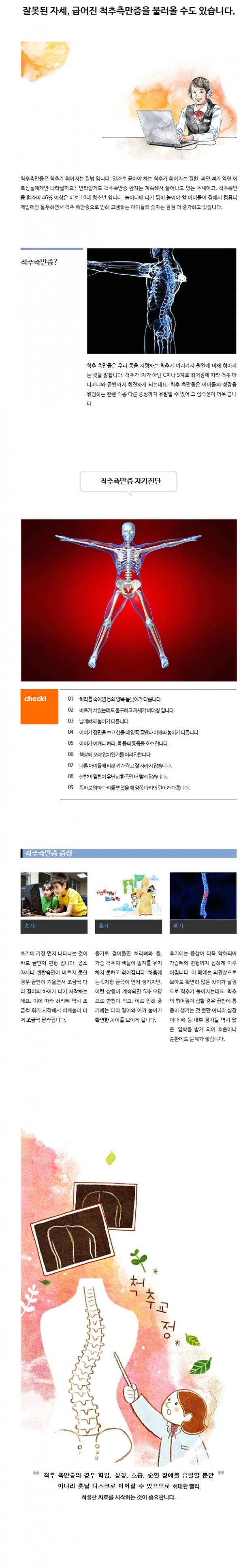 질환정보 | 잘못된 자세, 굽어진 척추측만증을 불러올 수도 있습니다.