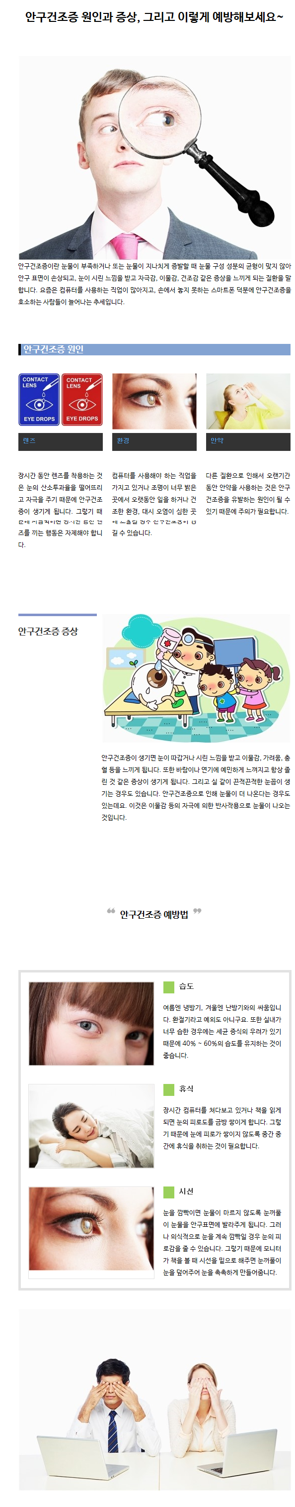 질환정보 | 안구건조증 원인과 증상, 그리고 이렇게 예방해보세요~