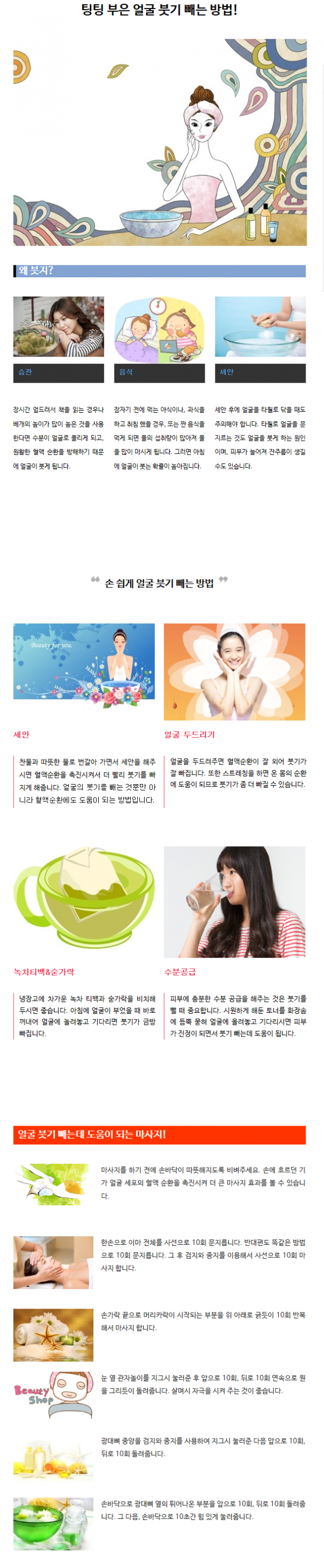 피부미용 | 팅팅 부은 얼굴 붓기 빼는 방법