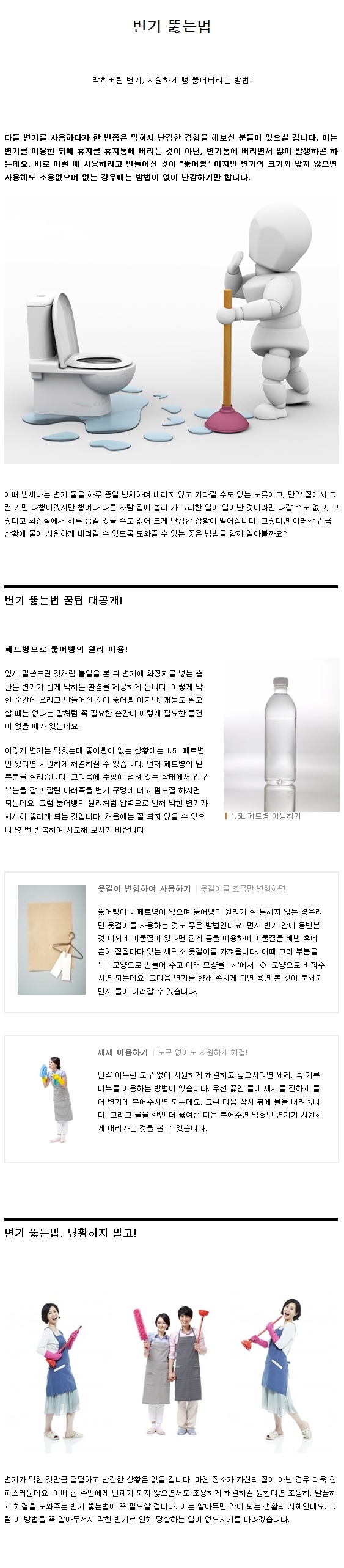 생활정보 | 변기 뚫는법, 뚫어뻥 없을 땐?