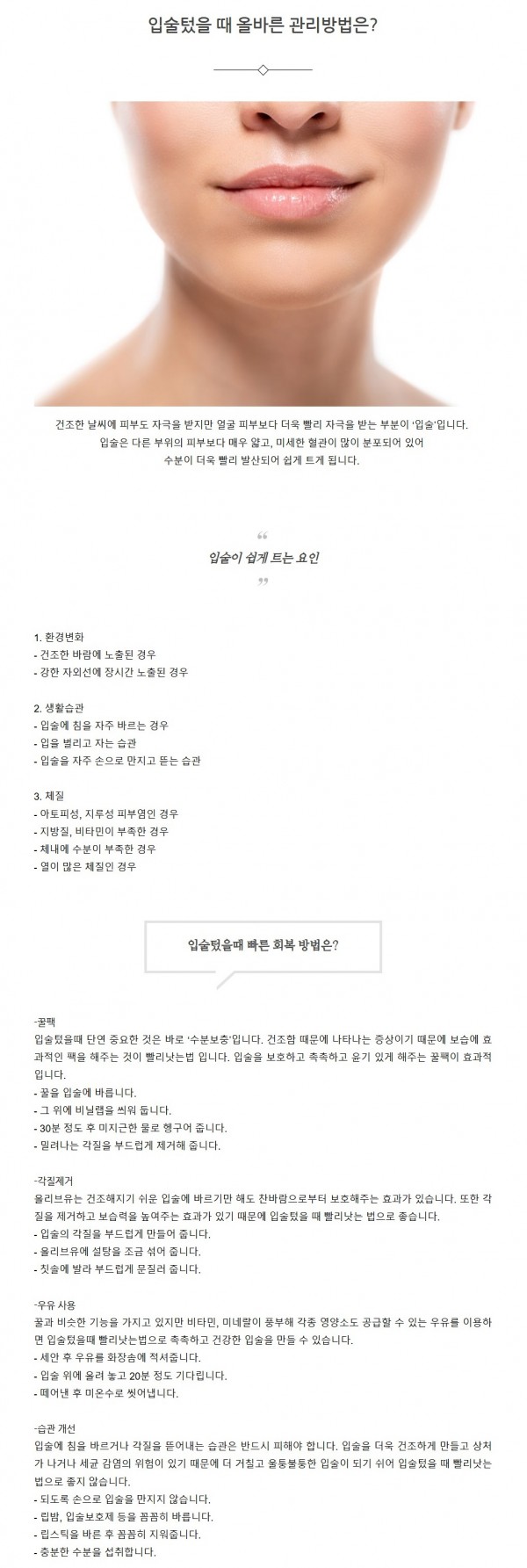 피부미용 | 입술텄을 때 올바른 관리방법은?