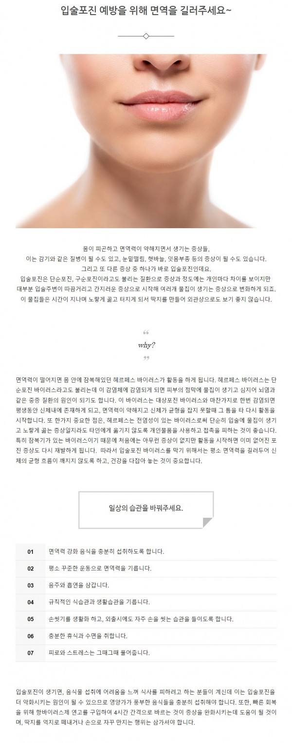 질환정보 | 입술포진 예방을 위해 면역을 길러주세요~