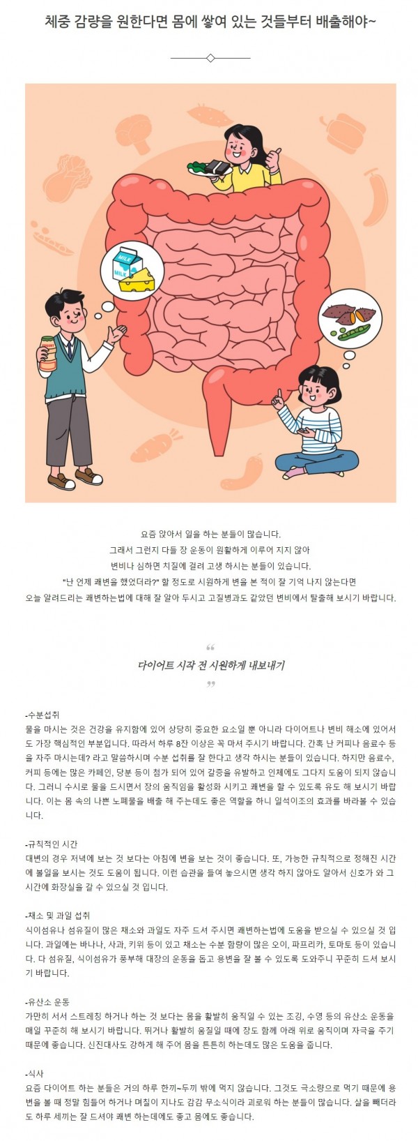 다이어트 | 체중 감량을 원한다면 몸에 쌓여 있는 것들부터 배출해야~