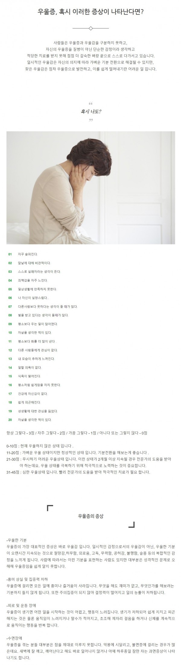 질환정보 | 우울증, 혹시 이러한 증상이 나타난다면?