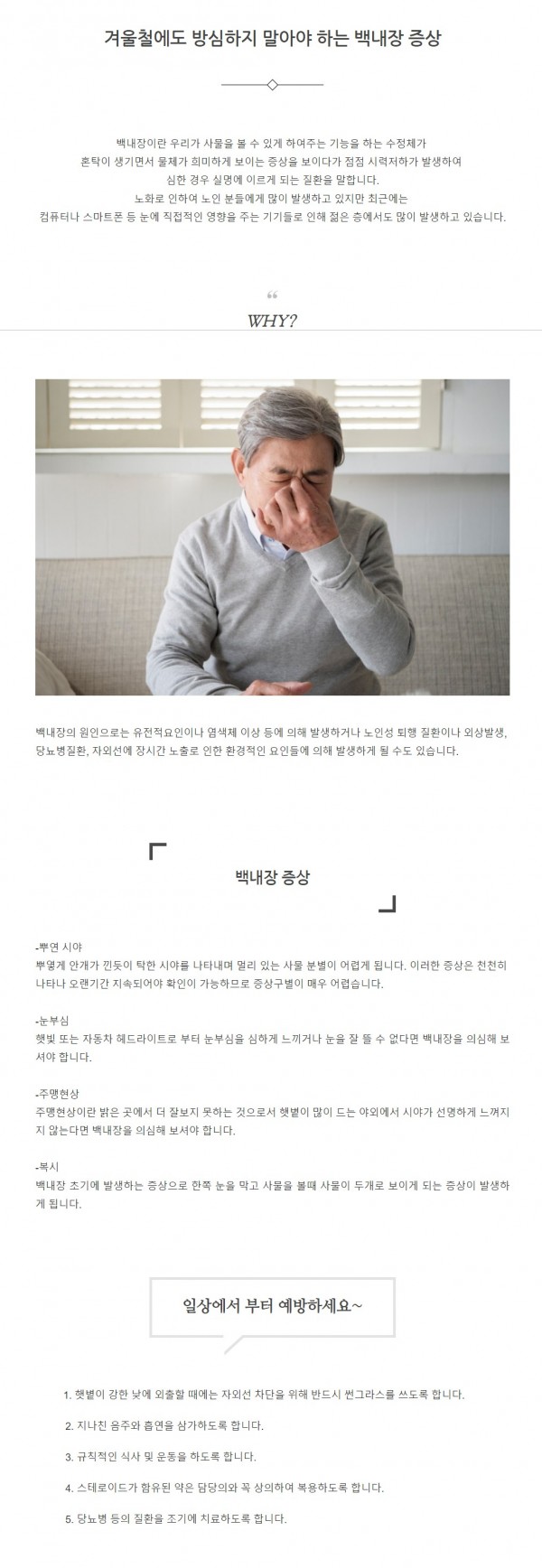 질환정보 | 겨울철에도 방심하지 말아야 하는 백내장 증상
