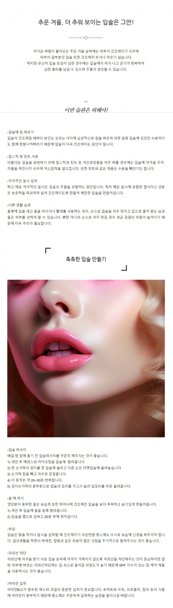 피부미용 | 추운 겨울, 더 추워 보이는 입술은 그만!