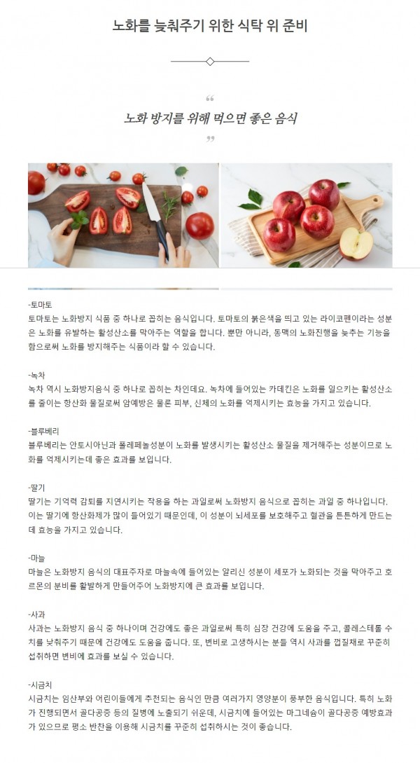 생활정보 | 노화를 늦춰주기 위한 식탁 위 준비