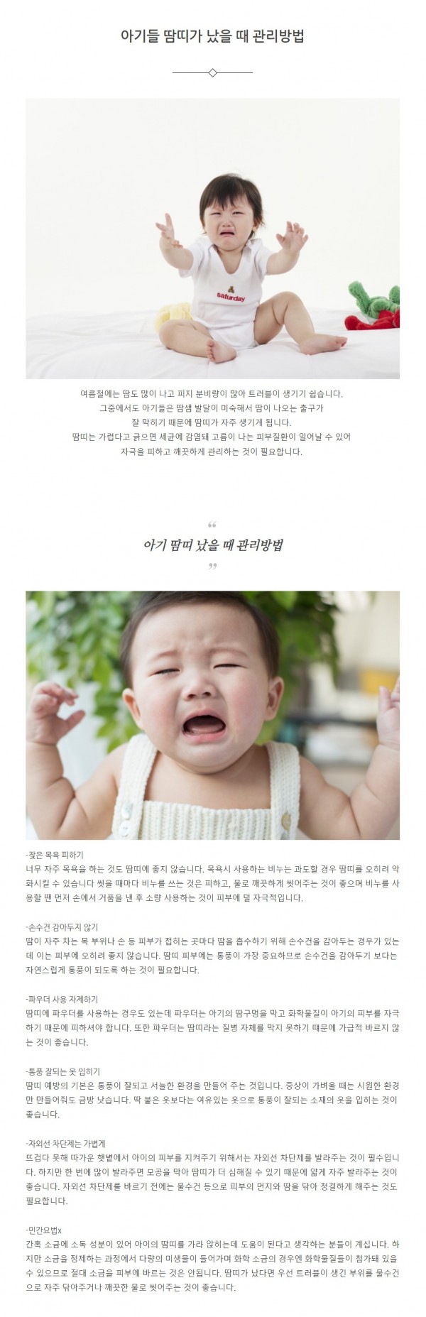 생활정보 | 아기들 땀띠 났을 때 관리방법