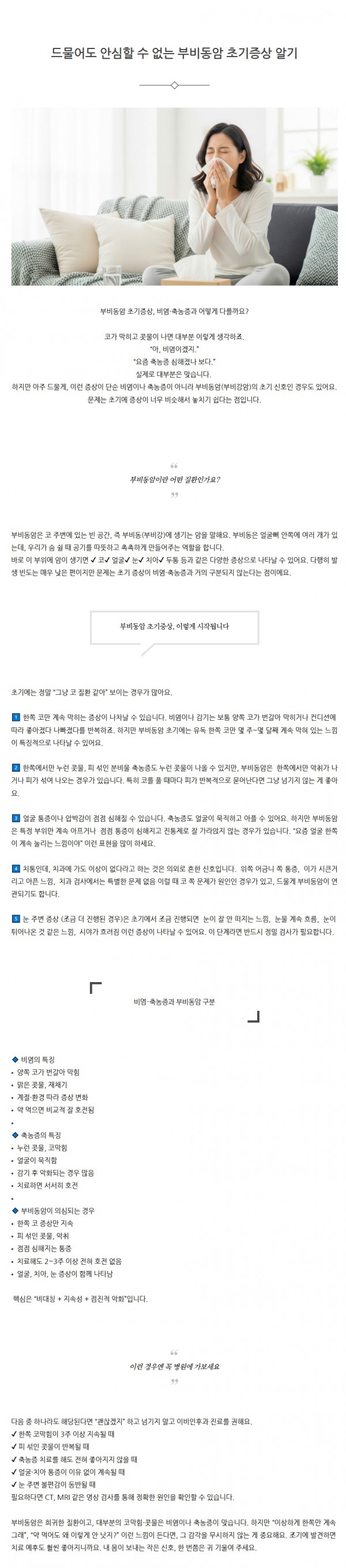 질환정보 | 드물어도 안심할 수 없는 부비동암 초기증상 알기