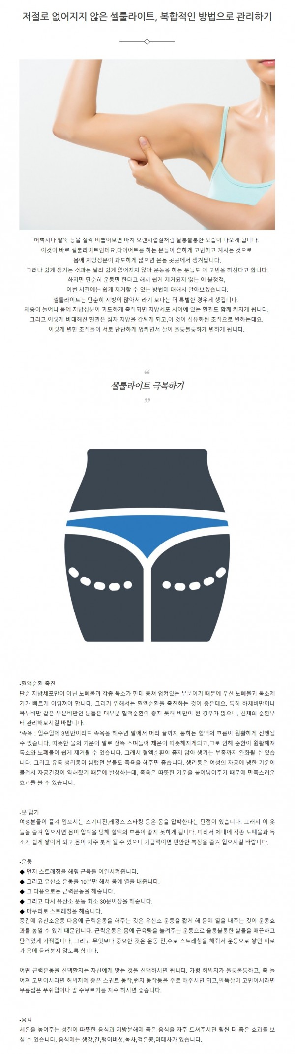 다이어트 | 저절로 없어지지 않는 셀룰라이트, 복합적인 방법으로 관리하기