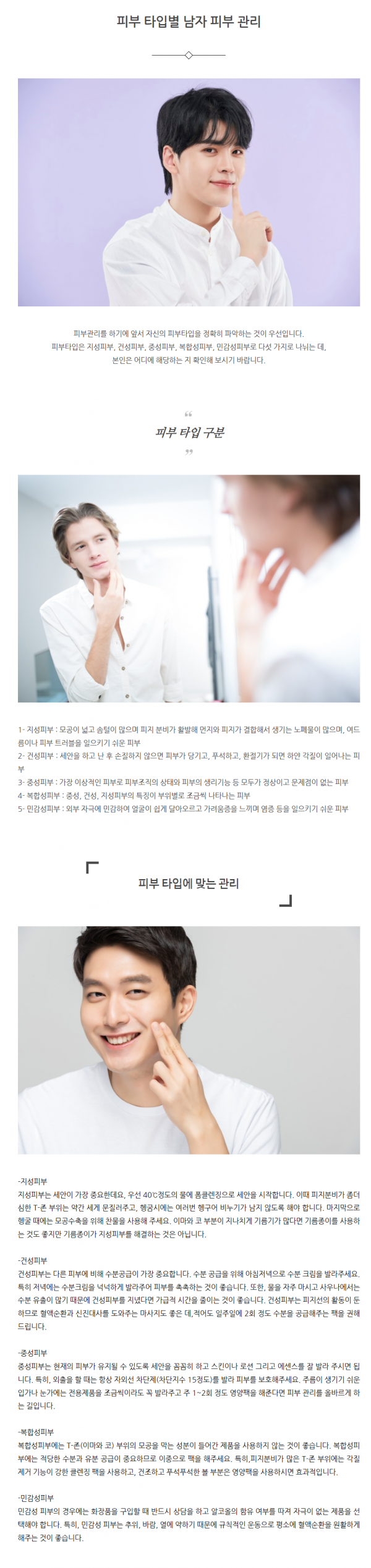 피부미용 | 피부 타입별 남자 피부 관리