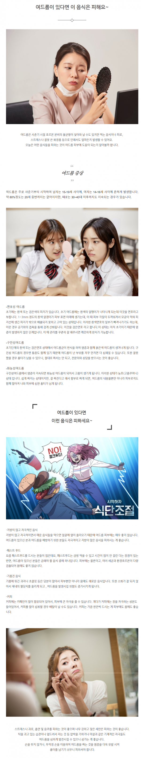 피부미용 | 여드름이 있다면 이 음식은 피해요~