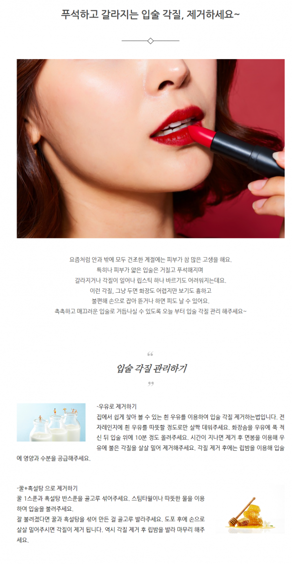 피부미용 | 푸석하고 갈라지는 입술 각질, 제거하세요~