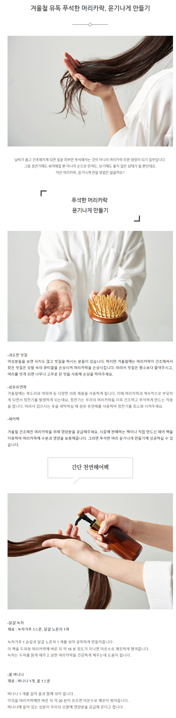 피부미용 | 겨울철 유독 푸석한 머리카락, 윤기나게 만들기