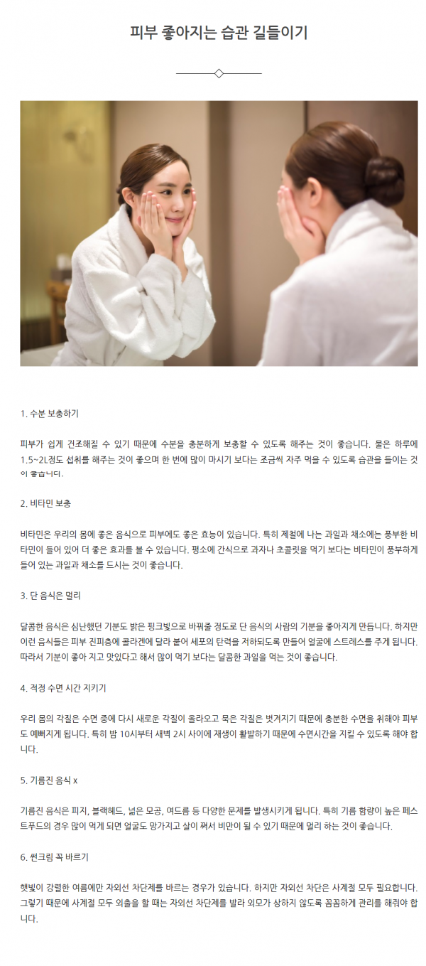 피부미용 | 피부 좋아지는 습관 길들이기
