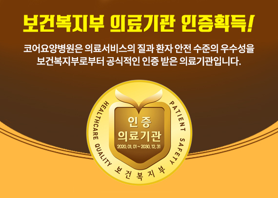 안심하세요. 코어요양병원입니다. 코어를 만나면 건강한 삶이 펼쳐집니다.