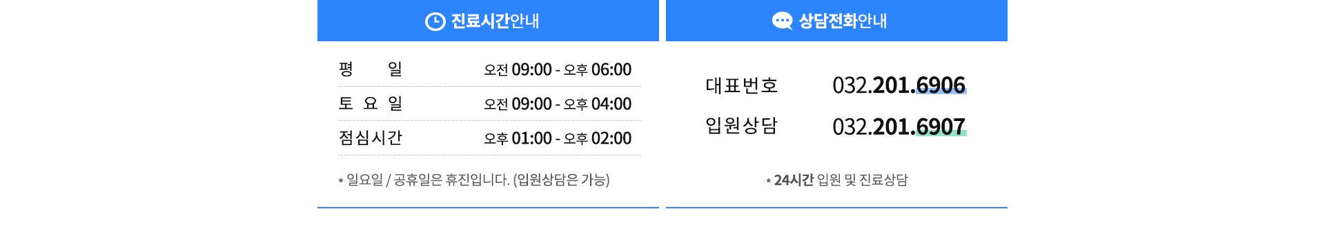 인천광역시 남구 학익동 244-33 거성빌딩 4층 코어요양병원 대표자 : 홍길동 사업자등록번호 : 123-45-6789 TEL : 032-201-6906 FAX : 032-201-7506