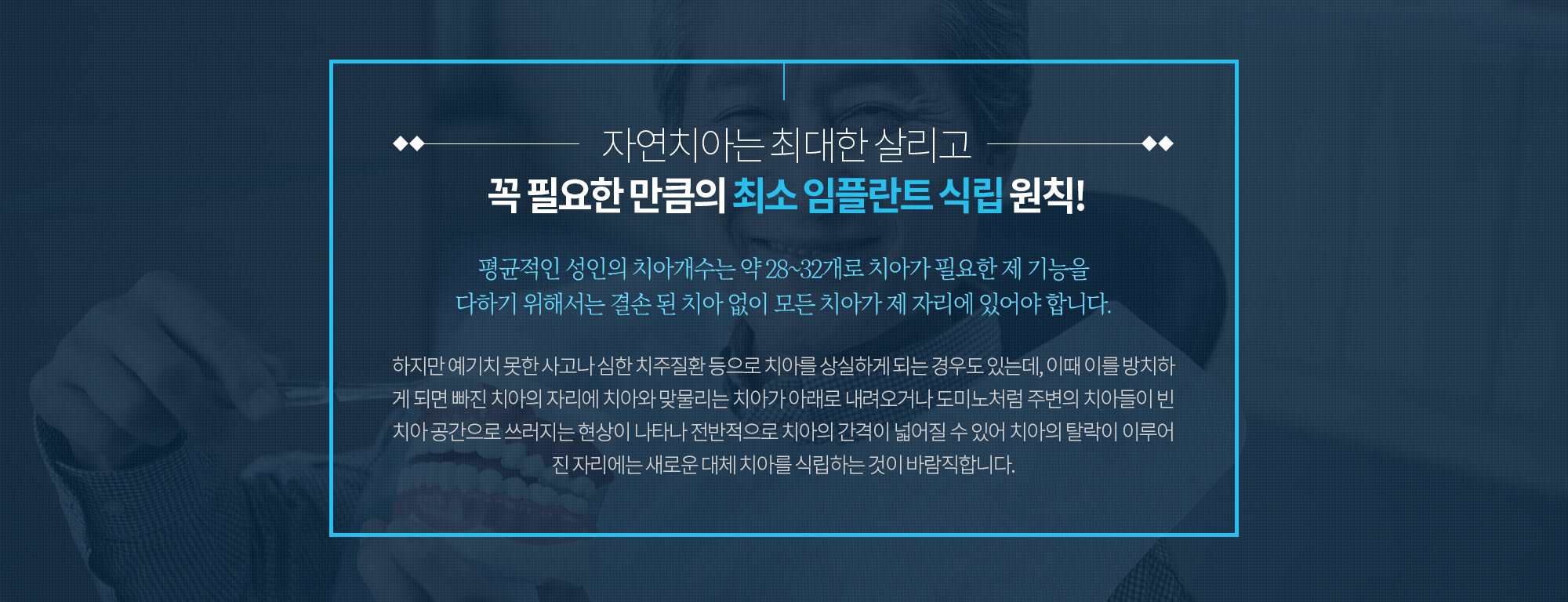 우리는 치아뿐만 아니라 당신의 건강까지 생각합니다.