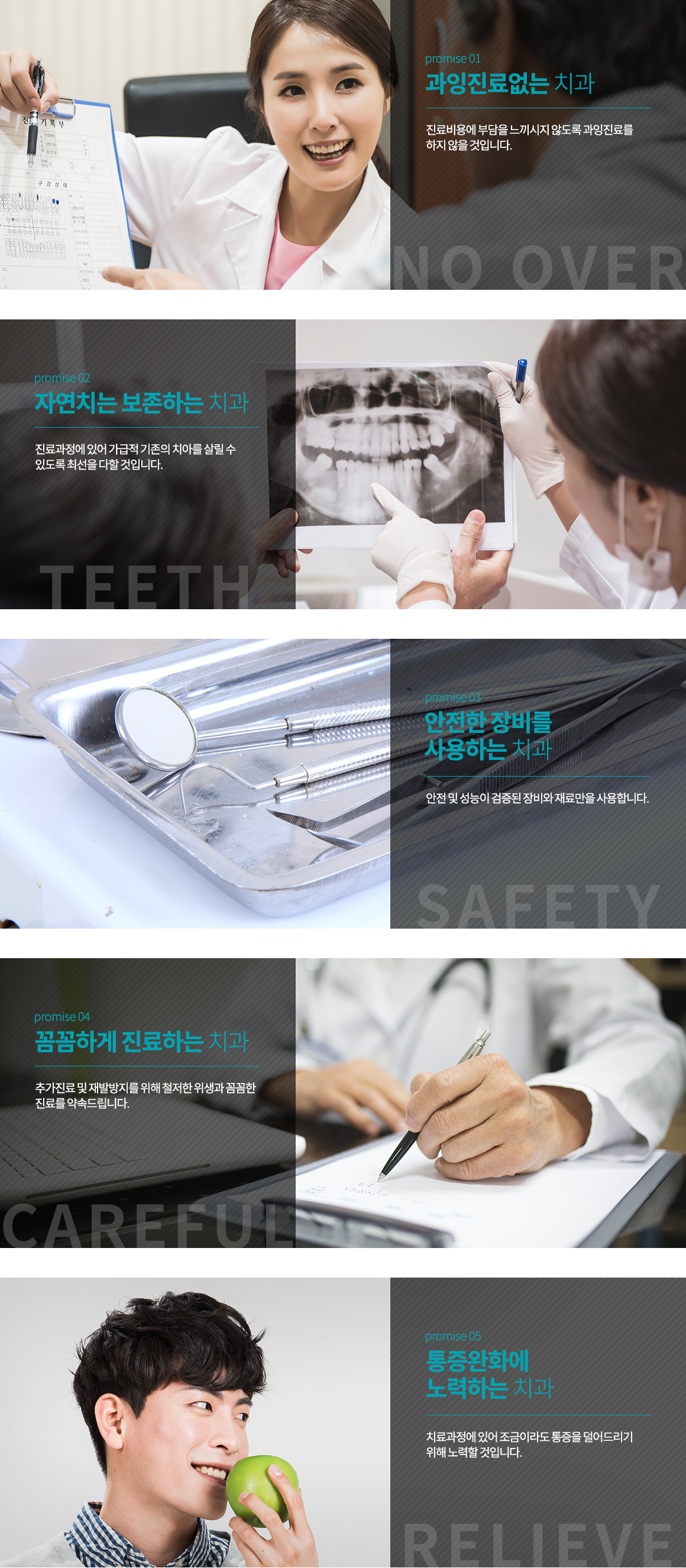 저희 치과는 환자분의 만족과 미소를 위하여 다섯가지를 약속드립니다.