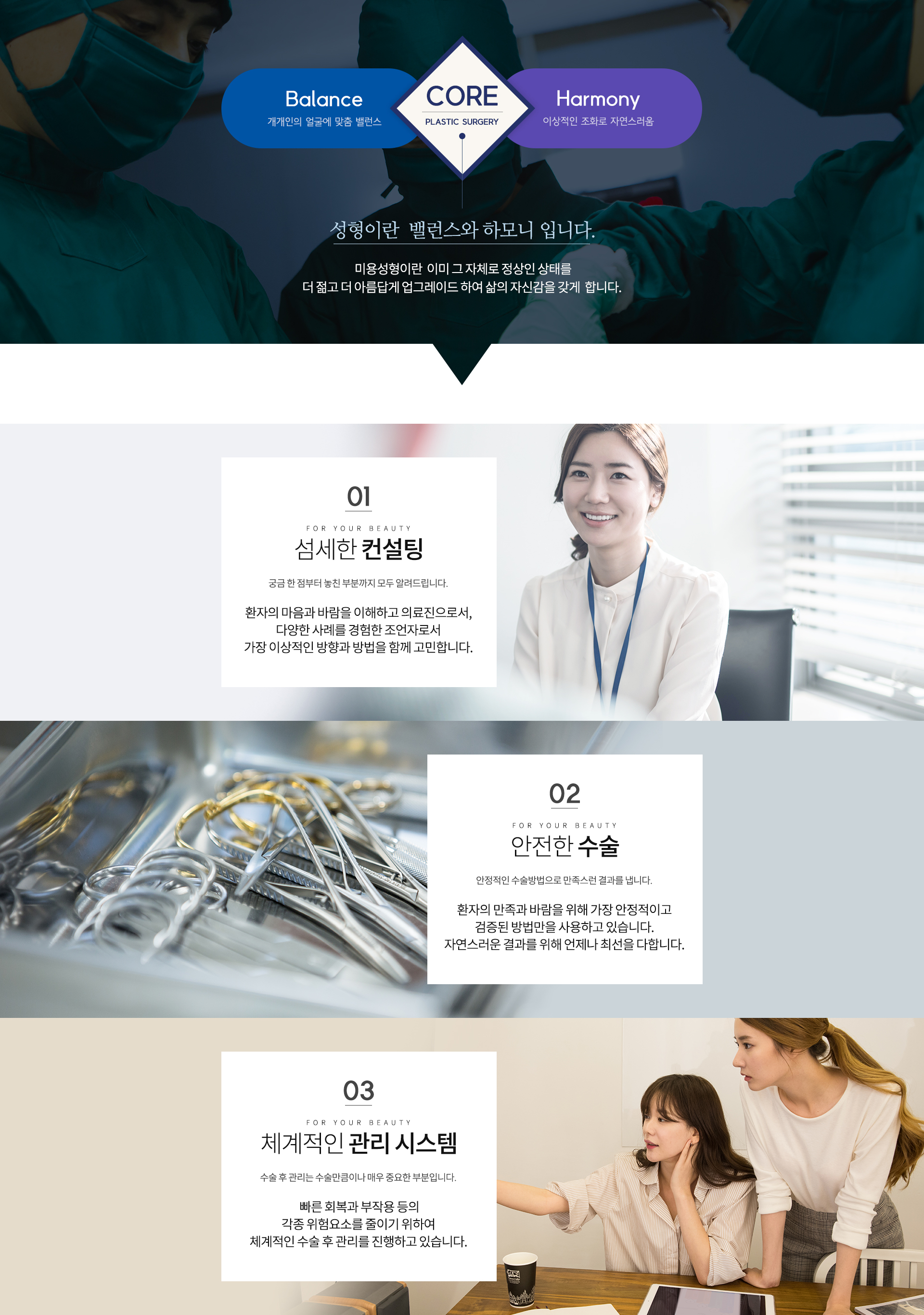 개인별 1:1 맞춤 상담부터 수술 및 사후관리까지 정성을 다하고 있습니다.