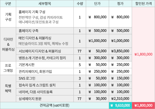 할인된 완성형 홈페이지 제작비용을 확인해보세요