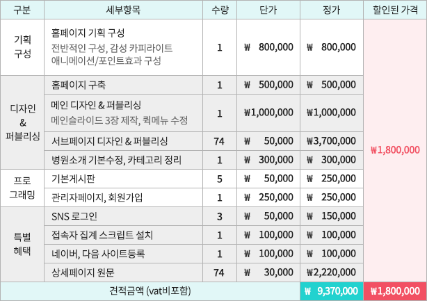 할인된 완성형 홈페이지 제작비용을 확인해보세요