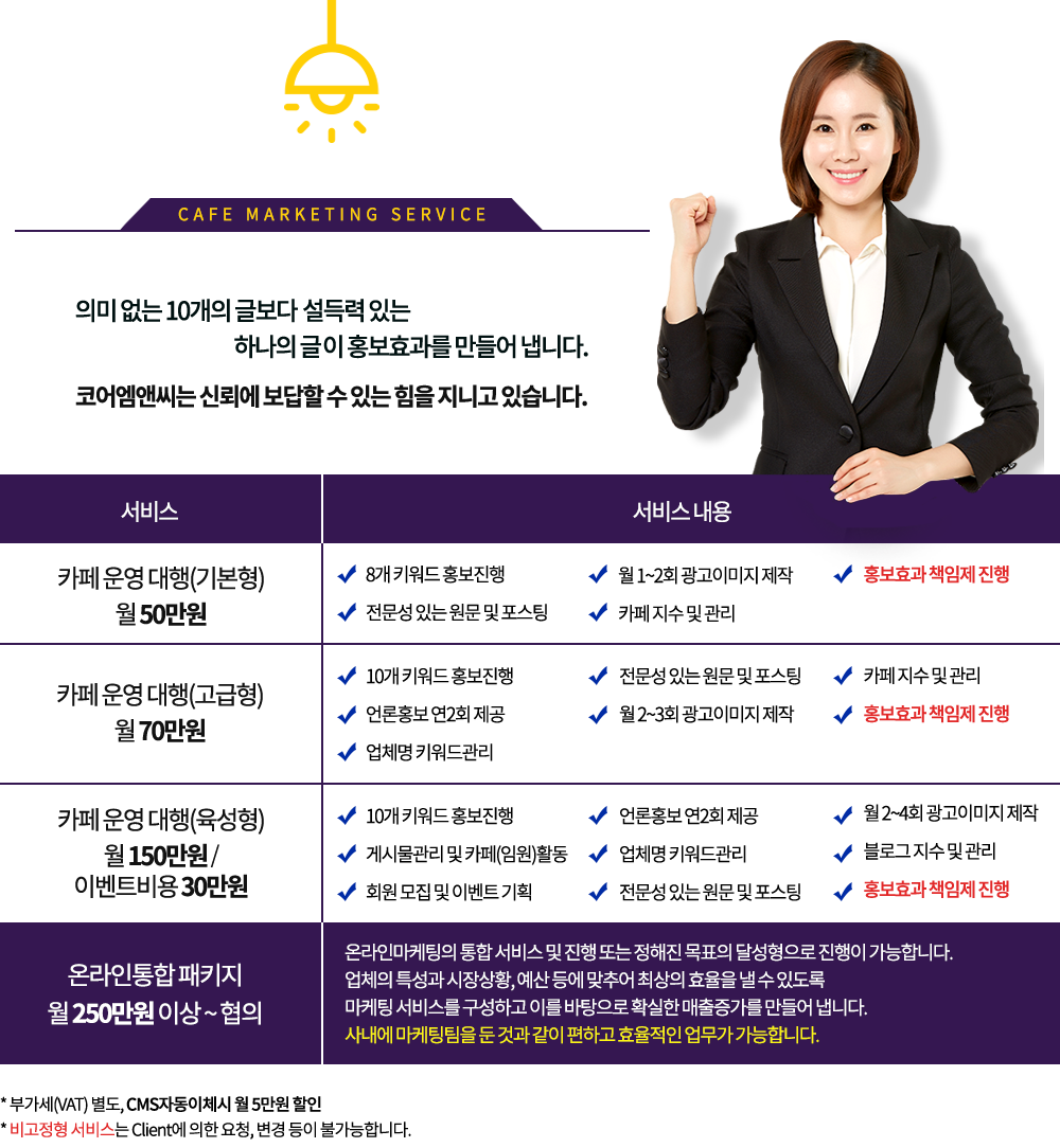 | 카페 운영 대행(육성형) 월 150만원 이벤트비용 30만원 |